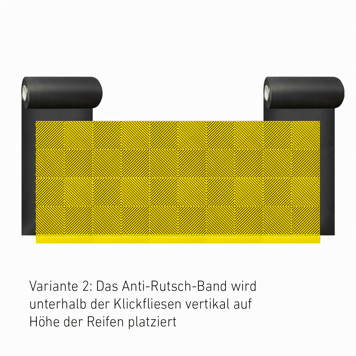 Mata antypoślizgowa rekomendowana jest przy bardzo śliskich powierzchniach (podłogi szklane, polerowane). Chroni przed przemieszczaniem się modułów. Nie ma konieczności montażu maty na całej powierzchni, wystarczy na brzegach. Montaż maty nie jest wymagany na stałe (kołki, klej itp.).